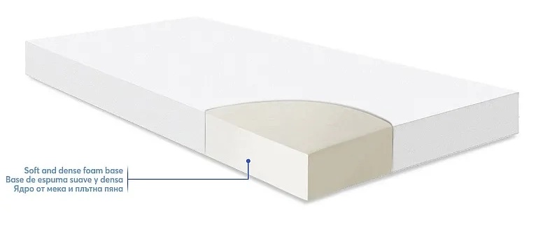 Нежный детский матрас, покрытый цветным хлопковым материалом.