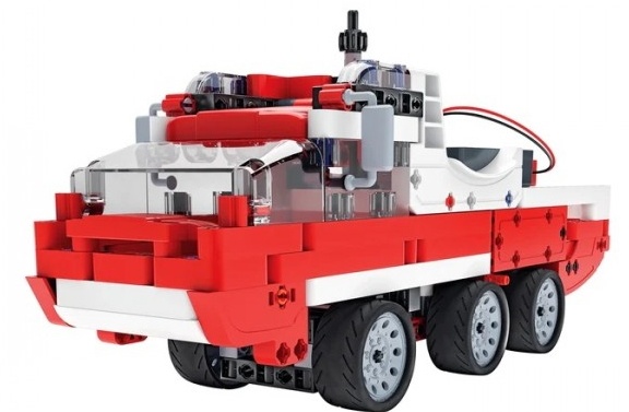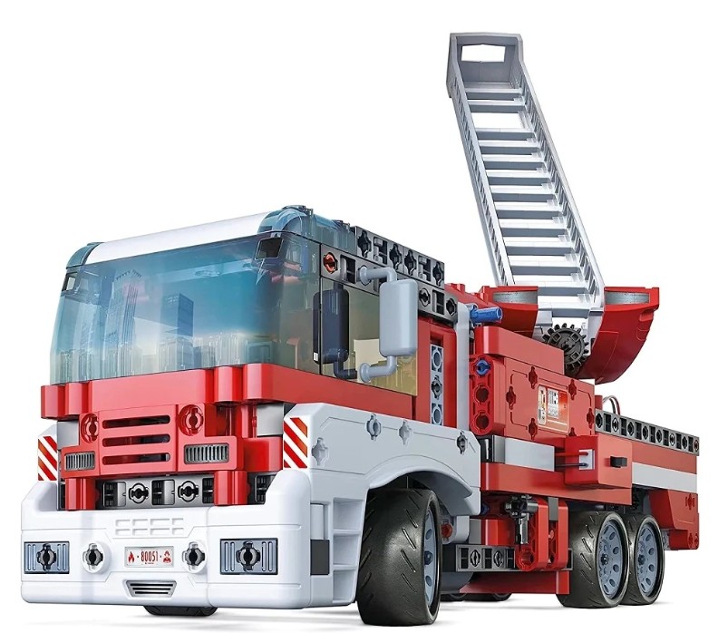 С этим набором создайте большой против пожарной машины, которая оснащена электродвигателем.