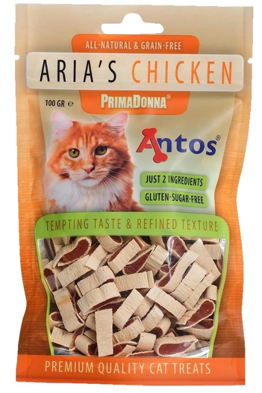 Antos PrimaDonna Aria’s Chicken 100 г — это высококачественное лакомство для кошек, созданное специально для удовлетворения привередливых гурманов. Эти нежные кусочки курицы являются идеальным способом побаловать вашего питомца.