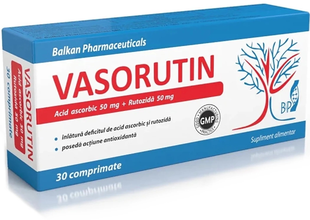 Васорутин BP — это пищевая добавка в форме таблеток, сочетающая преимущества витамина C (аскорбиновой кислоты) и рутозида (рутина) для поддержания здоровья сосудов и укрепления иммунной системы. Витамин C обладает выраженными антиоксидантными свойствами, а рутозид способствует поддержанию эластичности и нормального функционирования капилляров.