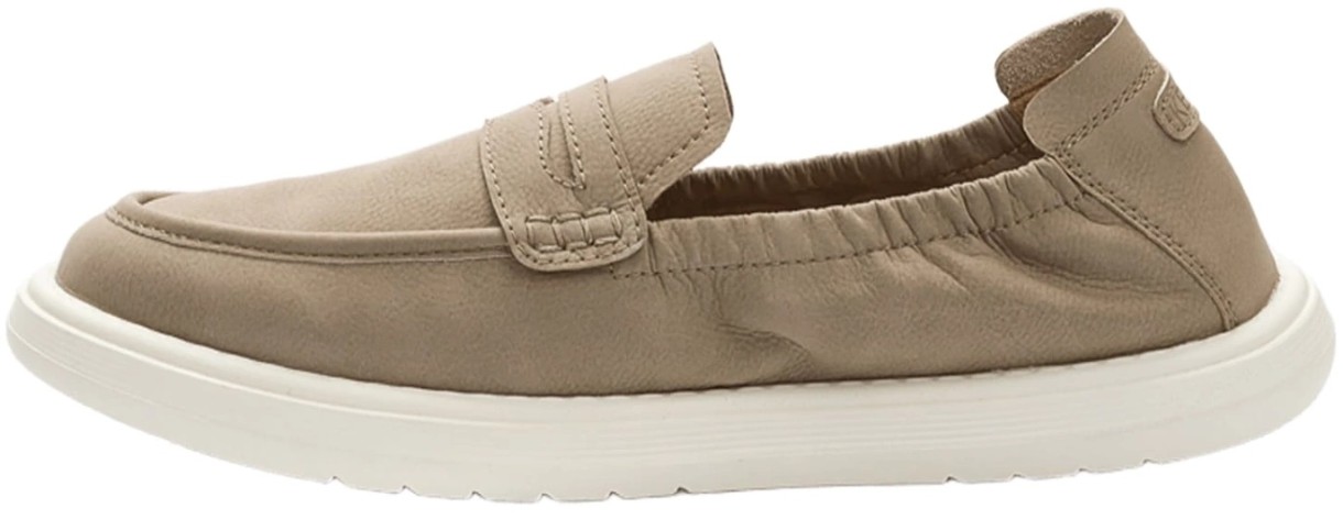 Верх изготовлен из высококачественного натурального нубука, обладающего приятной на ощупь бархатистой текстурой и матовым благородным оттенком. Отсутствие подкладки делает обувь лёгкой и хорошо вентилируемой, позволяя стопам «дышать» даже в жаркие дни.