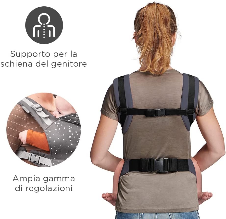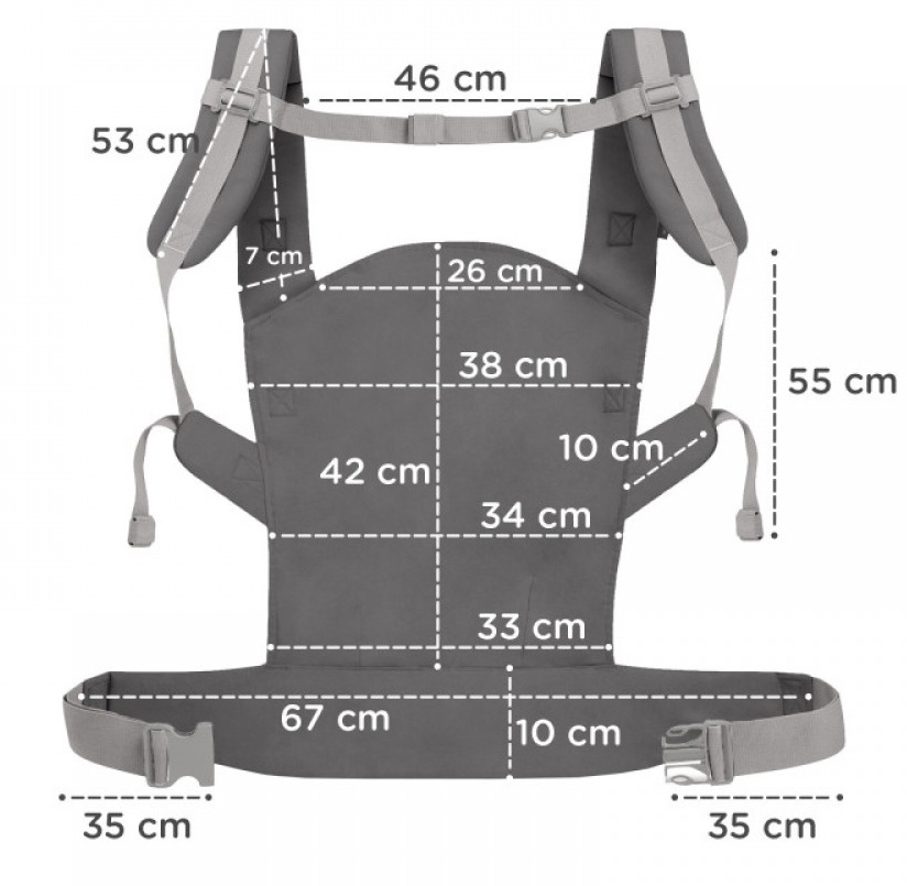 Ремни с регулируемой длиной и мягкие протекторы обеспечивают правильное расположение переноски на родителе, и комфортны для ребенка на разных этапах развития. Кроме того, удобный поясной ремень имеет ширину 10 см.