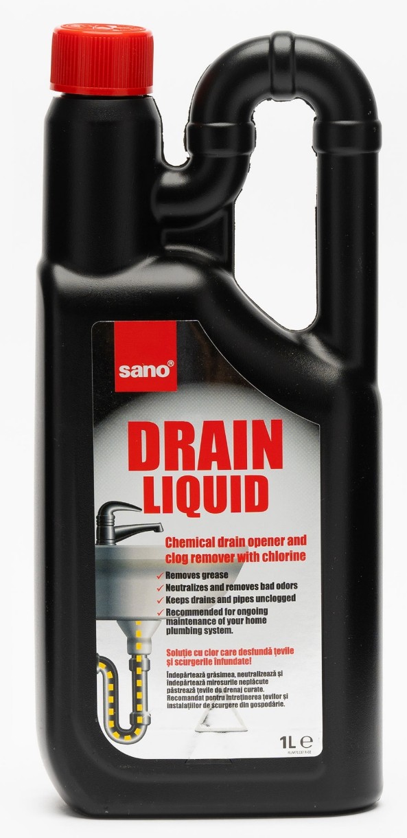 Гель Sano Drain Liquid — эффективное средство, предназначенное для прочистки засоренных водостоков и устранения неприятного запаха. Растворяет жиры, предотвращая забивание канализации и появление неприятных запахов. Очищает трубы, не допуская скопления в них микробов. Содержит Жавель — эффективное вяжущее вещество длительного действия, которое постепенно очищает стенки трубопровода. Не наносит ущерба трубам. Предназначен для профилактического ухода.