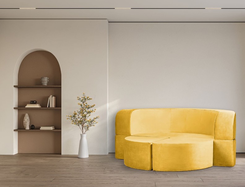 Полукруглый диван с банкетками превращается в круглую, просторную и уникальную кровать!