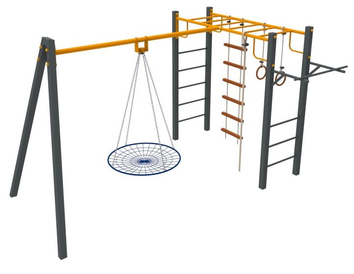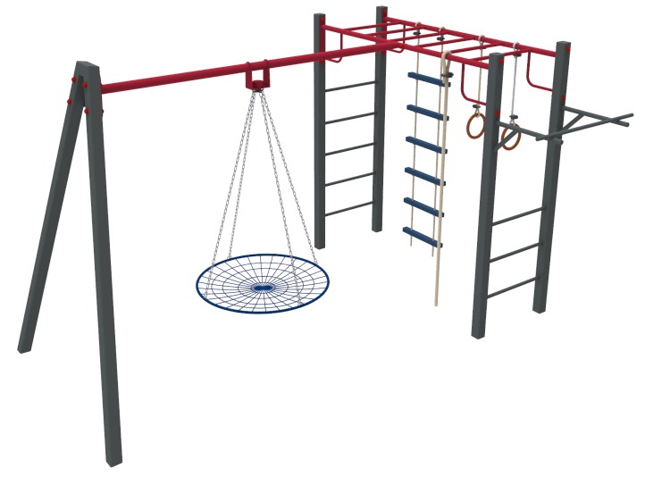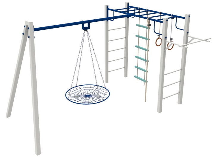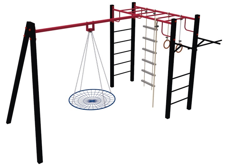 Разработан и изготовлен в соответствии с европейскими нормами, рассчитанный на большие нагрузки. Позволяет вести активный и здоровый образ жизни. В этот комплект включены различные виды элементов, что позволяет тренировать все группы мышц. Дополнение комплекса качелей позволяет совместить тренировки с развлечениями.