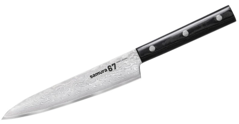 Универсальный нож 150 мм длиной может использоваться как на домашней, так и на профессиональной кухне. Небольшие овощи и фрукты без особо твёрдой кожуры и костей не устоят перед профессионализмом универсала Samura Damascus 67!