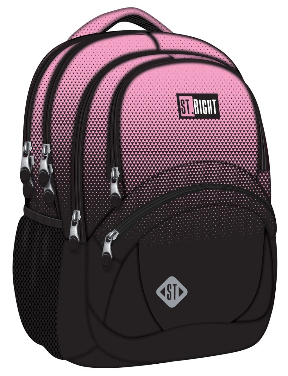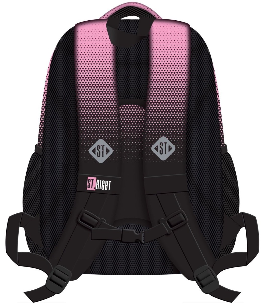 Эффектный рюкзак контрастных цветов — сочетание розового оттенка и чёрного. Он имеет нагрудный ремень и идеально профилированную спинку, поэтому вам не придется беспокоиться о здоровье позвоночника вашего ребенка. Обширный дизайн рюкзака включает в себя 3 отделения, два передних кармана и множество внутренних карманов.