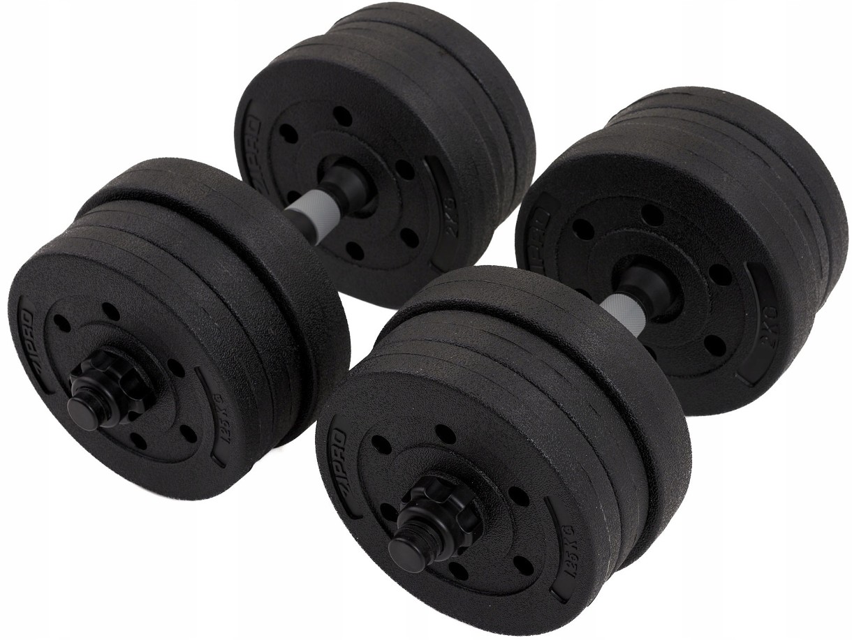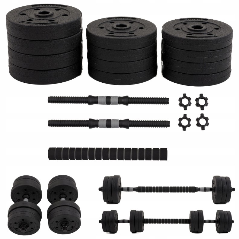 Откройте для себя преимущества штанги и гантелей с набором битумных гирь по 20 кг.