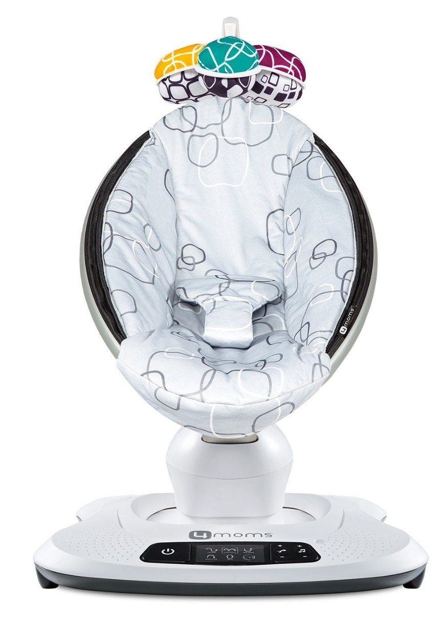 Уникальные электронные качели 4Moms Mamaroo разработаны американскими инженерами и педиатрами с непосредственным участием мам и их малышей. В результате они остановили свой выбор на 5 естественных режимов укачивания, наиболее подходящих большинству детей, 5 скоростей и 4 естественных звука природы. Чтобы малышу не было скучно, пока он бодрствует в комплекте Mamaroo есть дуга с игрушками. От предыдущей версии (4moms Mamaroo 3.0) их отличает: улучшенная система управления (обновленная контрольная панель), новый комплект игрушек на дугу, немного увеличилась максимально допустимая нагрузка - в Mamaroo 3.0 она составляла 9 кг, в Mamaroo 4.0 - уже 11,3.