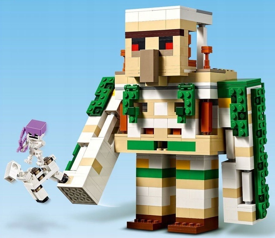 Конструктор Lego The Iron Golem Fortress порадует любителей игры Minecraft. В этом наборе сооружение превращается в большого гиганта.