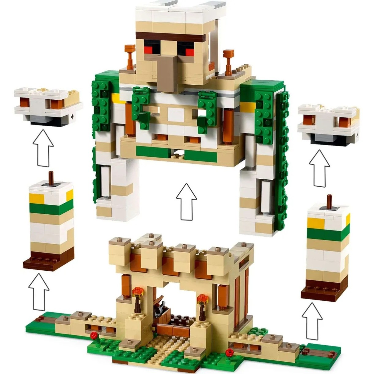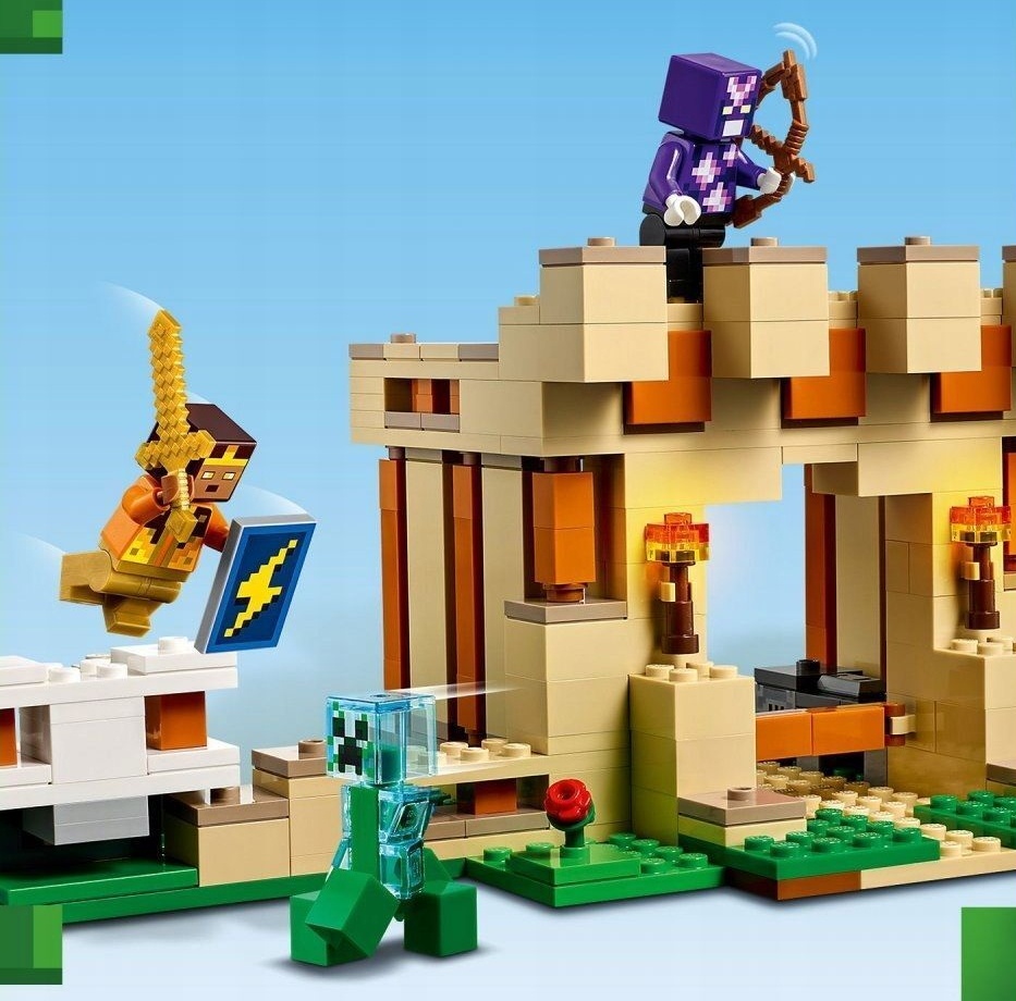 Дети могут поиграть в два варианта взаимодействия с этим конструктором. Сначала, построить крепость голема и со знакомыми персонажами, Хрустальный и Золотой рыцари, защитить свою базу от атак Крипера и двух всадников-скелетов. А потом можно переделать крепость в возвышающегося голема с подвижными руками.