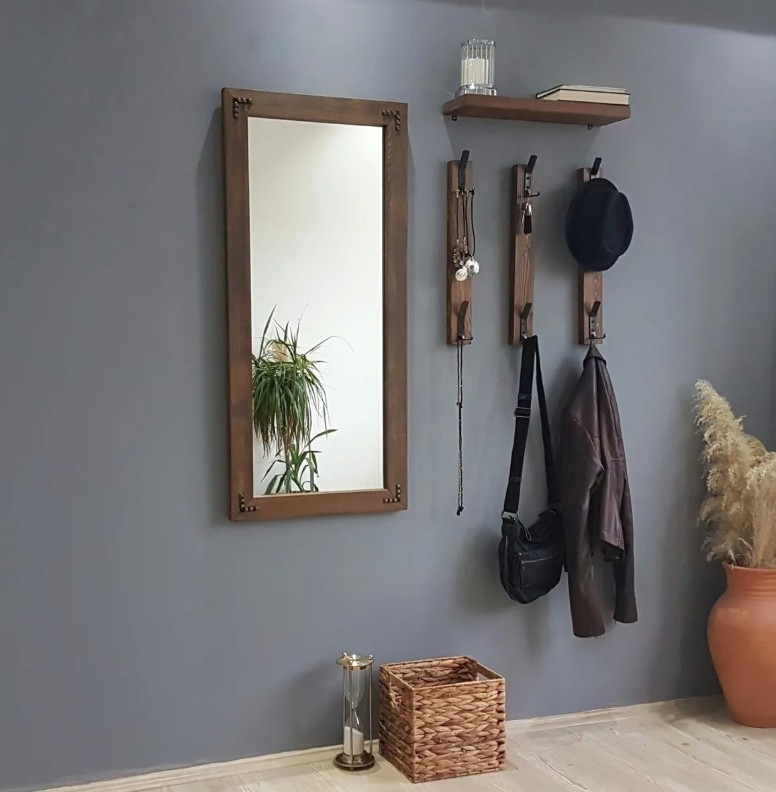 Этот комплект не только красивый элемент интерьера, но и практичное решение. Лёгкая фиксация на стене экономит место на полу и обеспечивает устойчивость. Комплект гармонично вписывается в любой интерьер, добавляя атмосферу тепла и элегантности.