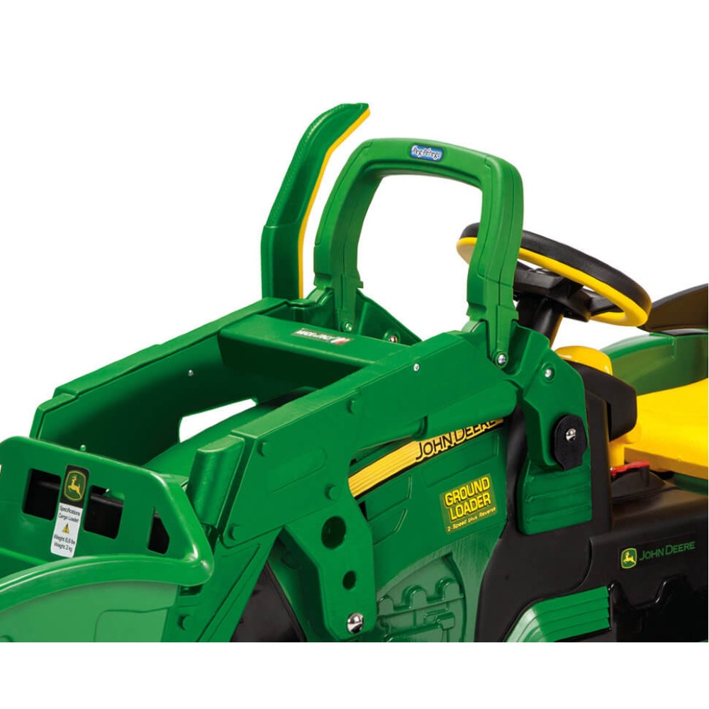 Одноместный электромобиль JD Ground Loader в точности копирует дизайн строительной техники компании John Deere и является аналогом модели экскаватора Ground Loader. Электромобиль оснащен подвижным ковшом, что открывает широкие возможности для тематических детских игр. Три скорости (реверс и две передние) и колеса из износостойкого полимера позволяют электромобилю передвигаться по любому дорожному покрытию (асфальту, грунту, щебенке, песку) и преодолевать подъемы с наклоном в 17%.