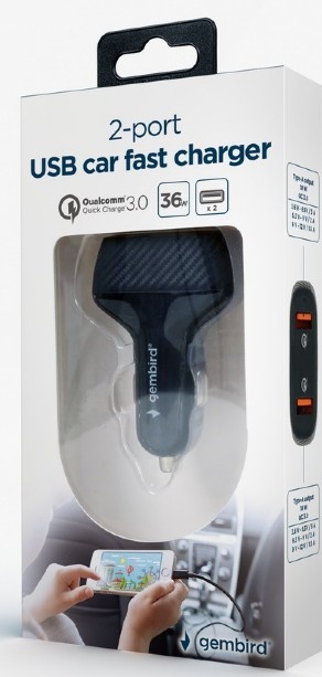 Автомобильная зарядка Gembird TA-U2QC3-CAR-01