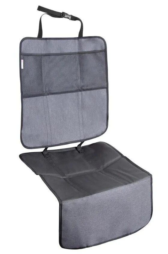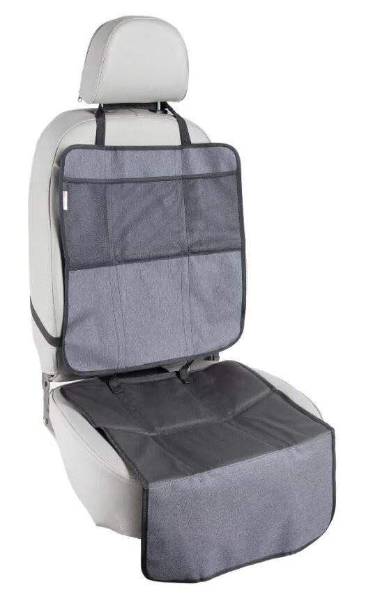 Органайзер можно разделить на две части: нижняя часть защищает сиденье под и за автомобильным креслом. Верхняя часть служит удобным организатором с местом для хранения.