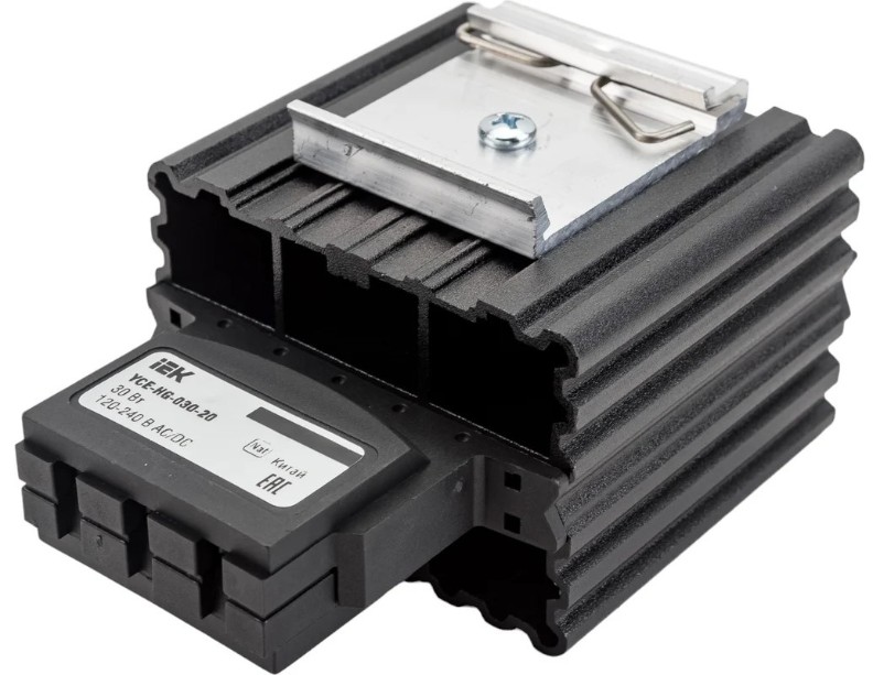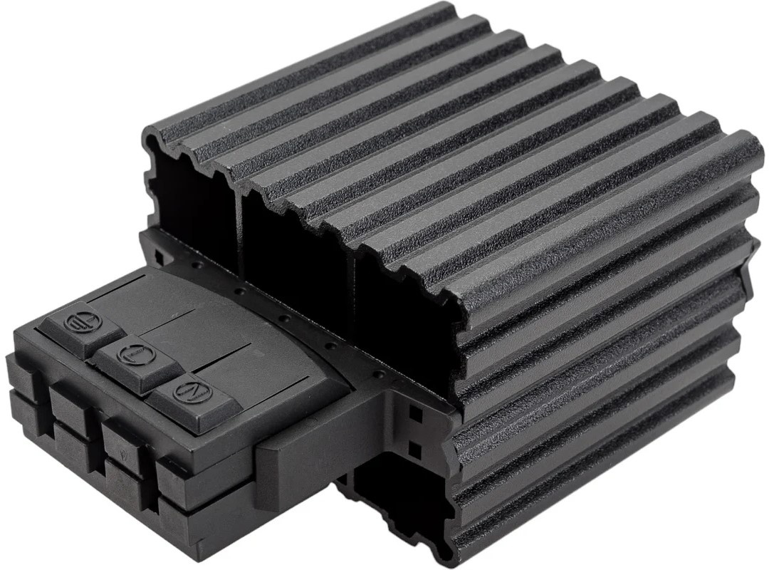Обогреватель на DIN-рейку предназначен для нагрева воздуха внутри электротехнических шкафов. Создаваемый конвекционных воздушный поток предотвращает образование областей с низкой температурой и защищает электрические компоненты от образования конденсата и замерзании при перепадах температуры, а также коррозии металлических элементов активного оборудования. Наличие калорифера с саморегулированием обеспечивает естественную циркуляцию нагретого воздуха внутри шкафа и позволяет избежать перегрева. При установке в паре с терморегулятором используется для поддержания требуемой температуры внутри шкафа и организации стабильной работы установленного оборудования. Может быть использован в электрооборудовании переменного тока частотой 50 Гц и напряжением до 230 В. Динамическая система нагрева воздуха максимально эффективна при длительных режимах работы. Подключение посредством зажимов делает монтаж максимально простым и быстрым.