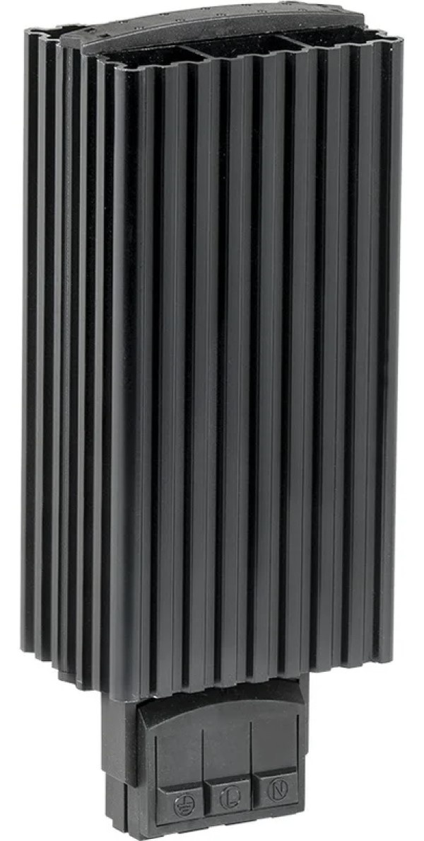 Обогреватель на DIN-рейку предназначен для нагрева воздуха внутри электротехнических шкафов. Создаваемый конвекционных воздушный поток предотвращает образование областей с низкой температурой и защищает электрические компоненты от образования конденсата и замерзании при перепадах температуры, а также коррозии металлических элементов активного оборудования. Наличие калорифера с саморегулированием обеспечивает естественную циркуляцию нагретого воздуха внутри шкафа и позволяет избежать перегрева. При установке в паре с терморегулятором используется для поддержания требуемой температуры внутри шкафа и организации стабильной работы установленного оборудования. Может быть использован в электрооборудовании переменного тока частотой 50 Гц и напряжением до 230 В. Динамическая система нагрева воздуха максимально эффективна при длительных режимах работы. Подключение посредством зажимов делает монтаж максимально простым и быстрым.