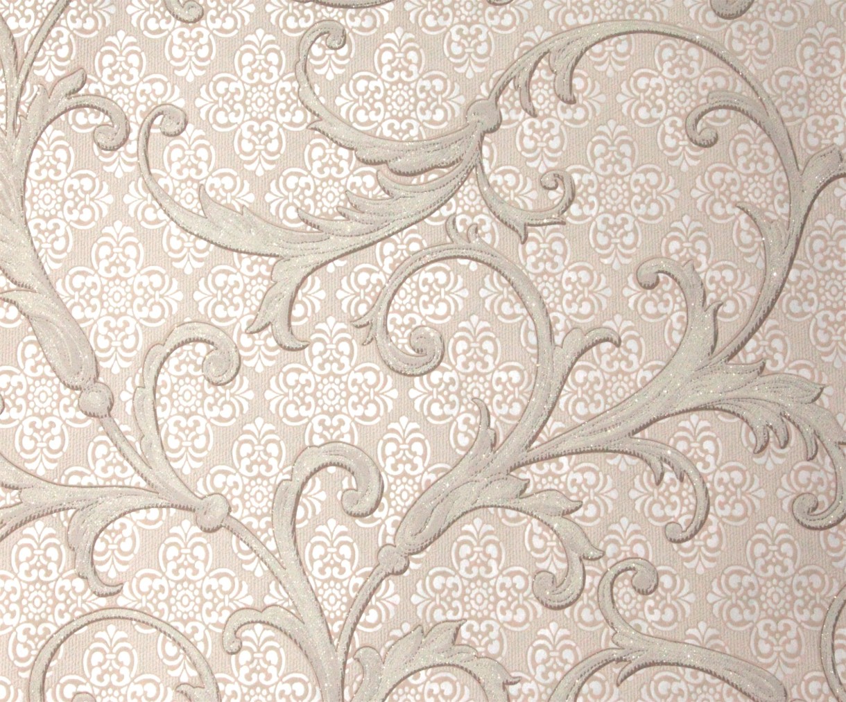 Цветовая гамма представлена натуральными оттенками с множеством вариантов бежевого, нарядным белым и выразительным графитовым цветом. Обои выполнены из вспененного винила на флизелиновой основе, ширина рулона 1,06 м.
