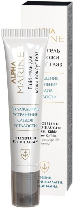 Fluid-гель для кожи вокруг глаз ESTEL ALPHA MARINE. Снимает следы усталости. Оказывает охлаждающий эффект. Придает тонус коже вокруг глаз. Содержит кофеин, ниацинамид и морской коллаген.