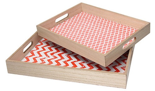 Набор из 2 подносов линии Kitchen Sangria состоит из 2 подносов, один длиной 40 см и шириной 30 см, другой длиной 36 см и шириной 26 см.