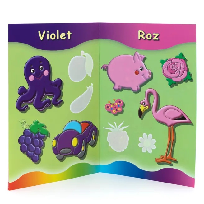 Эта иллюстрированная книжка с наклейками поможет малышам сопоставлять слова с соответствующими картинками и наклеивать нужные наклейки, чтобы изучать цвета.