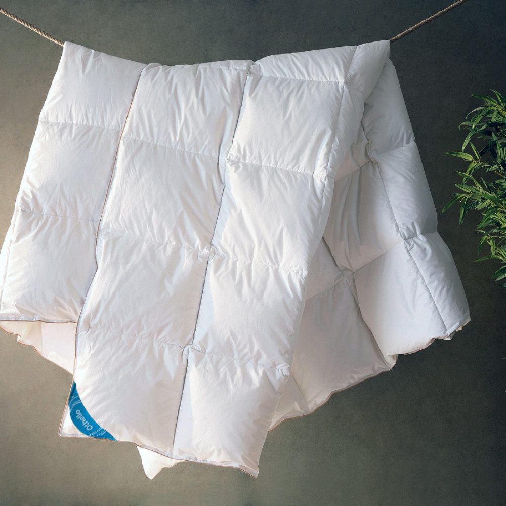 Вся линия пуховых изделий Othello обладает гипоаллергенными и антиклещными свойствами, ведь для чехла используется пухоудерживающий хлопок – он является барьером для пыли, пуховых ворсинок и микроорганизмов. Об этом свидетельствует маркировка NOMITE (соответствует Европейскому стандарту качества EN 13186).
