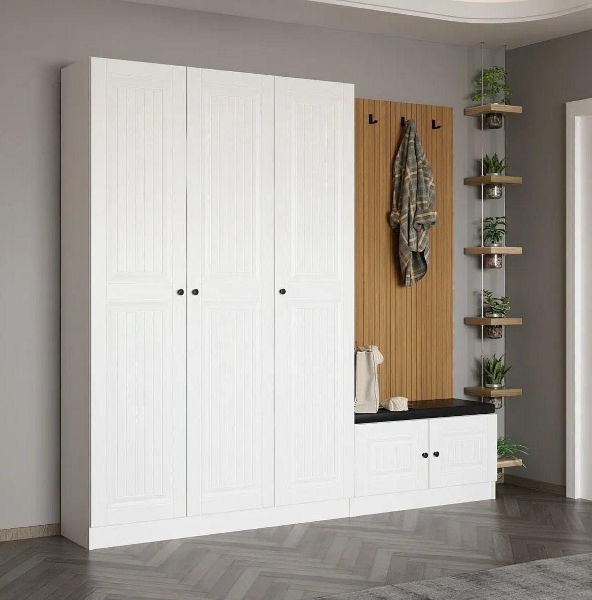 Подходит как для компактных, так и для просторных прихожих. При ширине 225 см, высоте 210 см и глубине 35 см конструкция сочетает продуманную функциональность и экономию пространства.