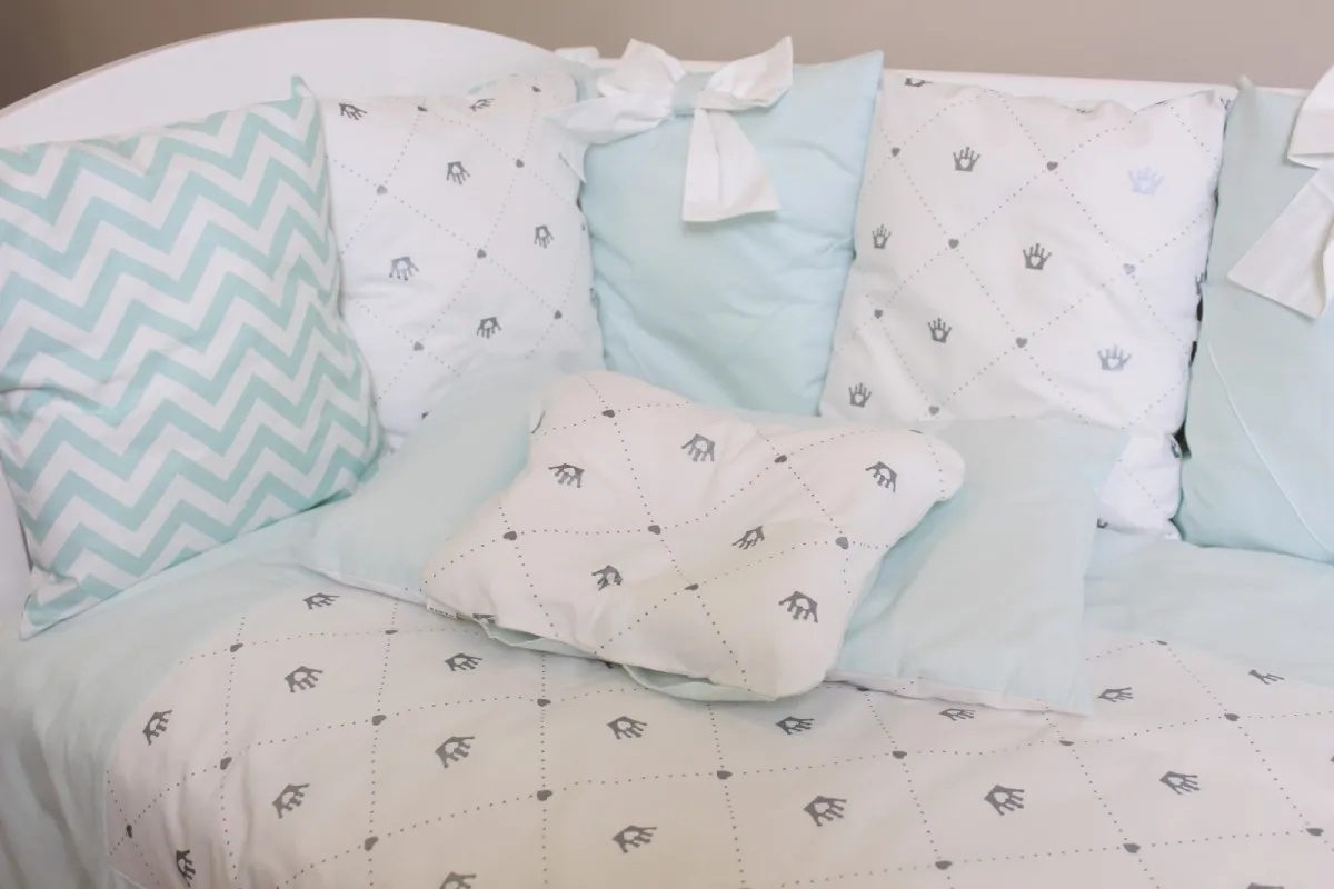 Комплект в кроватку 8 предметов из хлопка PernaMea Perne окружит вашего малыша теплом семейного уюта. Природные оттенки и спокойные тона сатина убаюкивают перед сном. Комплект подходит для спального места 120х60 см.