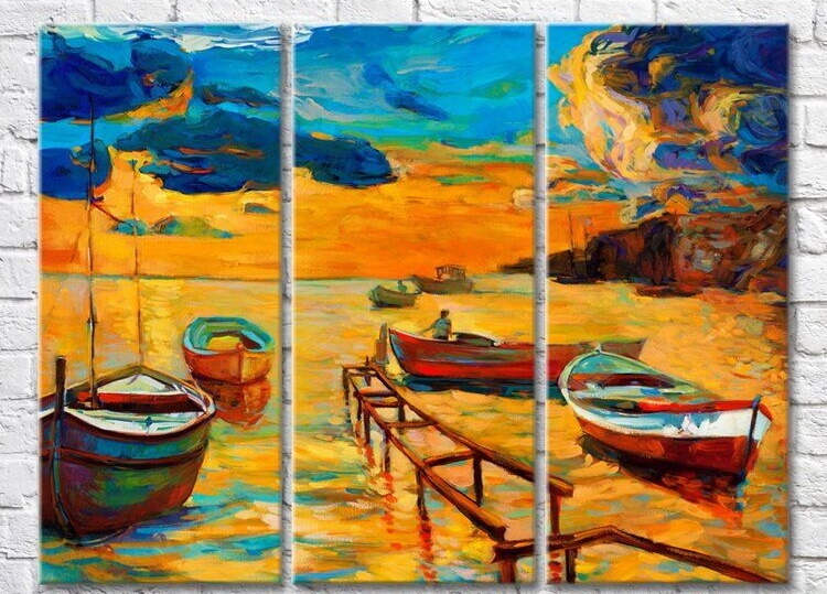 Картина Magic Color Drawing of boats near the coast at sunset (3469203)