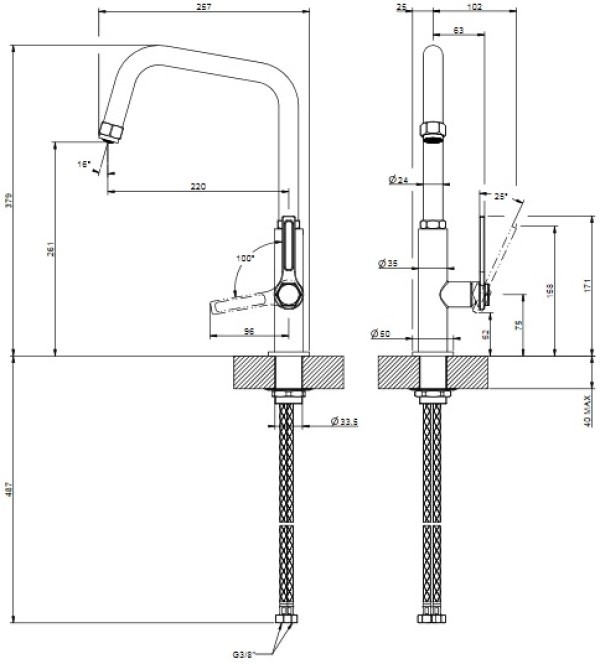 Длина излива220 мм