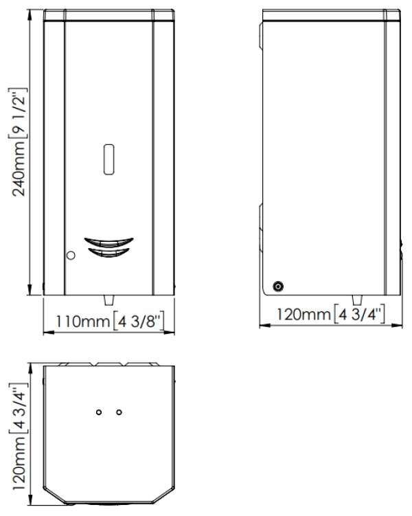 • Автоматический настенный дозатор для жидкого мыла из нержавеющей стали AISI 304 толщиной 0,8 мм и максимальной вместимостью 1 л. Доступны четыре варианта отделки (белая, чёрная, блестящая и сатиновая).
