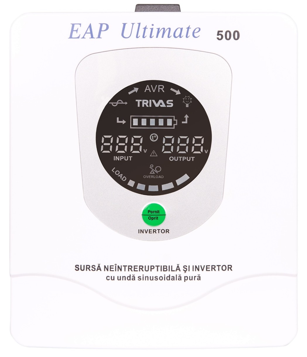 Источник ИБП EAP-500 Ultimate 800 ВА имеет номинальную мощность 500 Вт, но может поддерживать максимальную нагрузку 560 Вт. EAP-500 является частью линейки автоматизированных систем бесперебойного питания, специально разработанных для обеспечения безопасной работы в течение ограниченного времени систем с солнечными тепловыми панелями и / или твердотопливными котлами в случае отключения электроэнергии. Этот продукт можно использовать как инвертор (с неограниченной работой от источников постоянного тока 12 В).