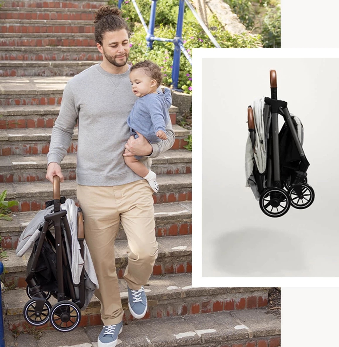 Созданная для тех случаев, когда ваши руки заняты, а место для хранения ограничено, эта коляска быстро и компактно складывается и идеально подходит для хранения в ограниченном пространстве или для перевозки в общественном транспорте.