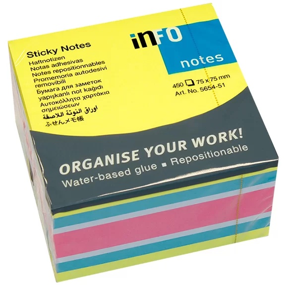 Бумага для заметок Info Notes 75x75mm Neon 450pcs (5654-51)