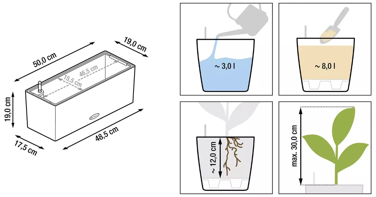 Цветочный горшок Lechuza Balconera Stone 50 Quarz White