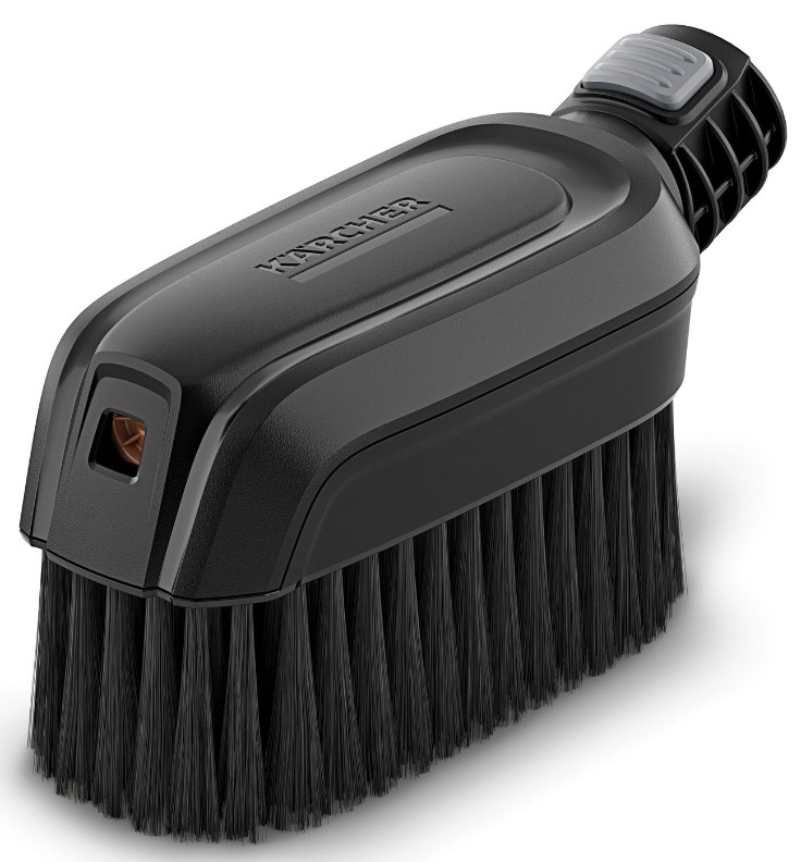 Особенно стойкие загрязнения (например, налет клейкой пыльцы на садовой мебели или присохшую грязь на цветочной кадке) не удается просто смыть струей воды. В таком случае необходима подходящая щетка. Моечная щетка WB 24 Handheld, разработанная специально для аппаратов среднего давления Kärcher, гарантирует превосходные результаты чистки. Сначала поверхность увлажняется формируемой ею веерной струей воды, а затем обрабатывается щетиной очень большой длины. При этом возможность поворота щеточной головки с шагом 90° позволяет удобно очищать различные места. В заключение отделенная от поверхности грязь смывается веерной струей воды. Подача воды производится только при нажатом рычаге аппарата, что обеспечивает ее экономное использование, а также способствует сбережению заряда аккумулятора. Разъем Quick Connect позволяет одной рукой отсоединить от удлинительной трубки моечную щетку и установить вместо нее другую принадлежность системы Handheld. Щетка WB 24 Handheld совместима с аппаратами среднего давления Kärcher (KHB 5 Battery и последующими моделями), но не подходит к аппаратам высокого давления классов K 2 — K 7.
