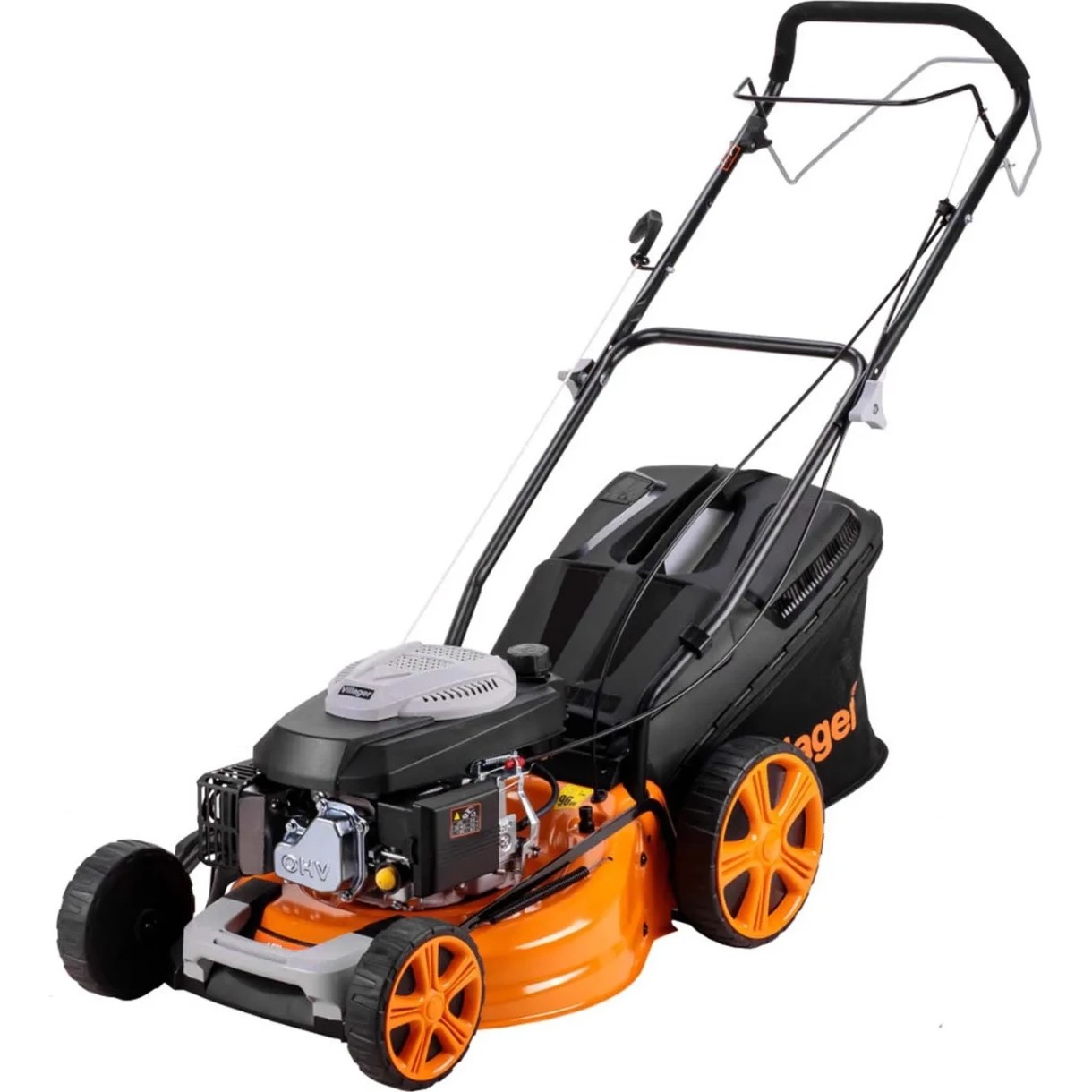Самоходная бензиновая газонокосилка Villager Prime 4111 T мощностью 3,5 л.с. (2,6 кВт) — это надежное решение для эффективного ухода за участками площадью до 1100 м². Модель оснащена четырехтактным двигателем T6 OHV объемом 146 см³, центральной 7-ступенчатой регулировкой высоты стрижки (25–75 мм) и стальным корпусом для долговечной службы. Функциональность дополняется шириной скашивания 457 мм, вместительным травосборником на 50 литров и возможностью бокового выброса травы.