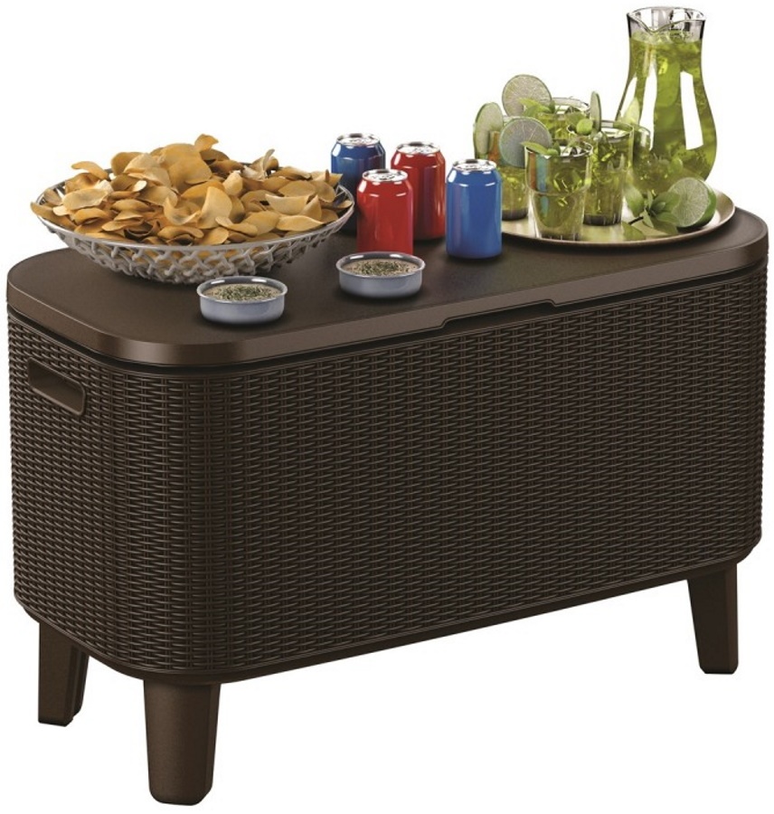 Компактный столик, который может регулироваться по высоте, отлично подойдет для оформления зоны отдыха у бассейна. Плетение под ротанг сочетается с шезлонгами и мебелью Keter. Во внутреннюю емкость можно положить лед или налить холодной воды для поддержания температуры ваших напитков. При необходимости емкость можно использовать для любого другого хранения.