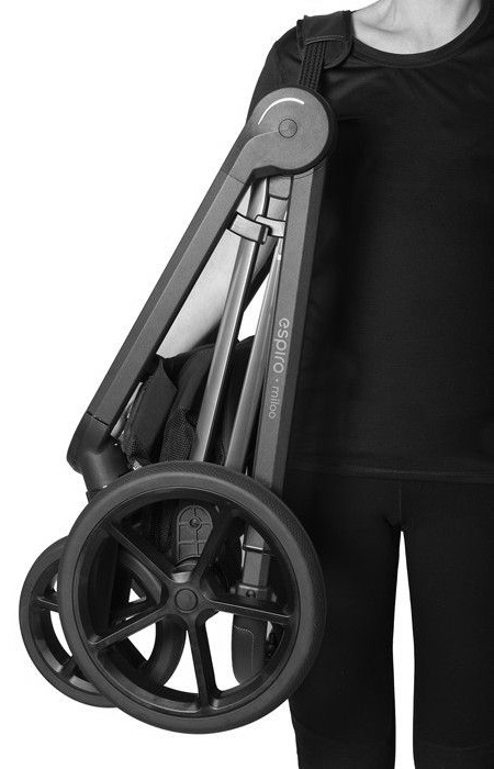 Колыбель с системой ThermoCot рассчитана на любую погоду. Ведь она удерживает тепло в холод, а летом, наоборот, отталкивает жар от асфальта, сохраняя комфортный микроклимат внутри. Большой капюшон хорошо защищает ребенка от непогоды. Он бесшумно регулируется вниз и вверх при помощи двух кнопок по бокам. Кнопки с функцией памяти, нажмите их по очереди, а затем опустите кап. Это удобно, если у вас на руках ребенок. Коляска Espiro Miloo отлично подготовлена для лета. Трехуровневая система вентиляции позволяет воздуху циркулировать вокруг ребенка. В жаркий день откройте окна в изголовье, изножье и на капюшоне. Это позволит снизить риск возникновения теплового удара.