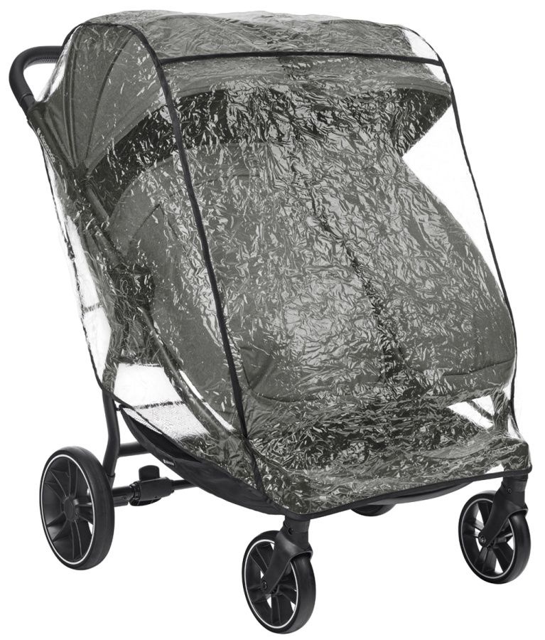 Легкая алюминиевая рама. Быстрая и простая система складывания с сиденьем и замком складывания. Одна большая и прочная ручка, облегчающая управление коляской. Два отдельных больших капюшона с удлиненной частью на молнии и сетчатыми окнами.