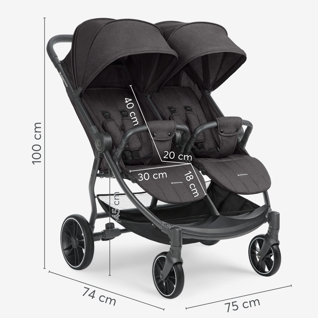 Современная коляска от KikkaBoo – отличная модель, предназначенная для родителей двойни. Он практичен, удобен и чрезвычайно компактен. Подходит для малышей от рождения до момента достижения каждым ребенком 15 кг.
