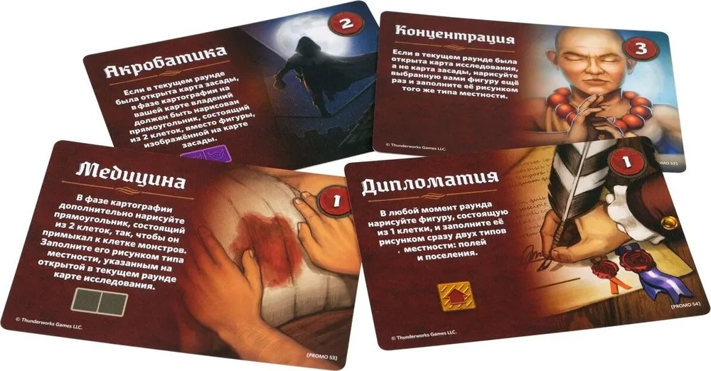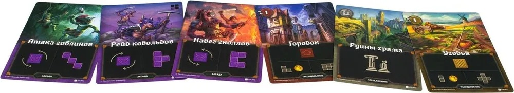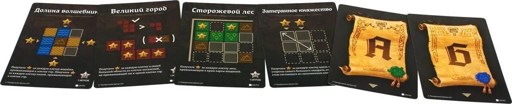 Комплектация1 журнал картографа, 16 карт подсчёта очков, 13 карт исследования, 4 карты засады, 4 карты сезонов, 4 карты указов, 8 карт навыков, 4 карандаша, Правила игры