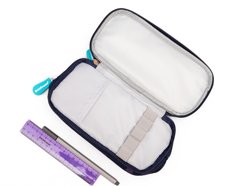 Этот вместительный пенал-футляр выполнен в классической форме параллелепипеда с закругленными углами. Материал пенала – износостойкий и прочный 100% полиэстер 900D. Модель снабжена надёжной молнией с мягким ходом. В переднем отделении расположены фиксаторы для крепления необходимых принадлежностей. В такой пенал помещается практически все, что необходимо для школьных занятий.