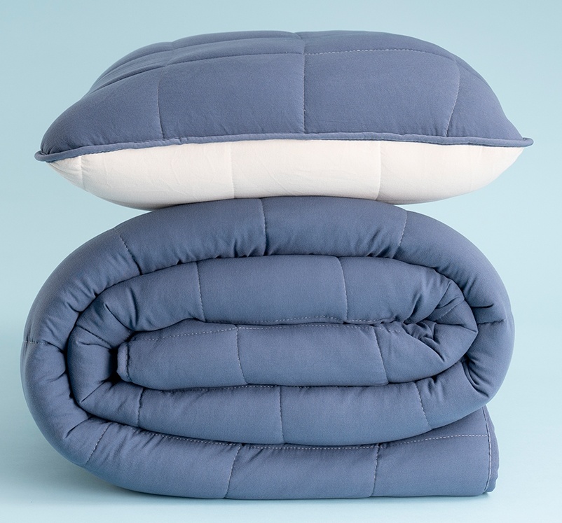 Egeo Life, новая часть коллекции Classico, сочетает в себе комфорт и элегантность. Это инновационное одеяло позволит каждому комфортно заснуть благодаря своему особому дизайну и красочным вариантам. Каждая сторона Egeo Life предлагает разную атмосферу: одна сторона выполнена в цвете экрю, другая представлена в зеленом, джинсовом или сером цветах, поэтому она идеально впишется в интерьер вашей спальни.