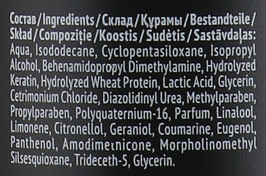 Способ применения: встряхните баллон и распылите по всей длине волос. Средство можно наносить как на влажные, так и на сухие волосы.