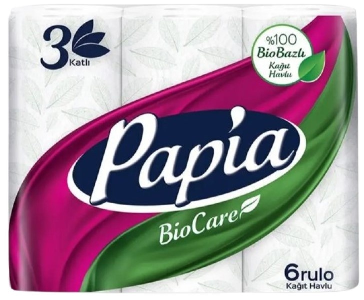 Бумажные полотенца Papia Bio Care 3 слоя 6 рулонов
