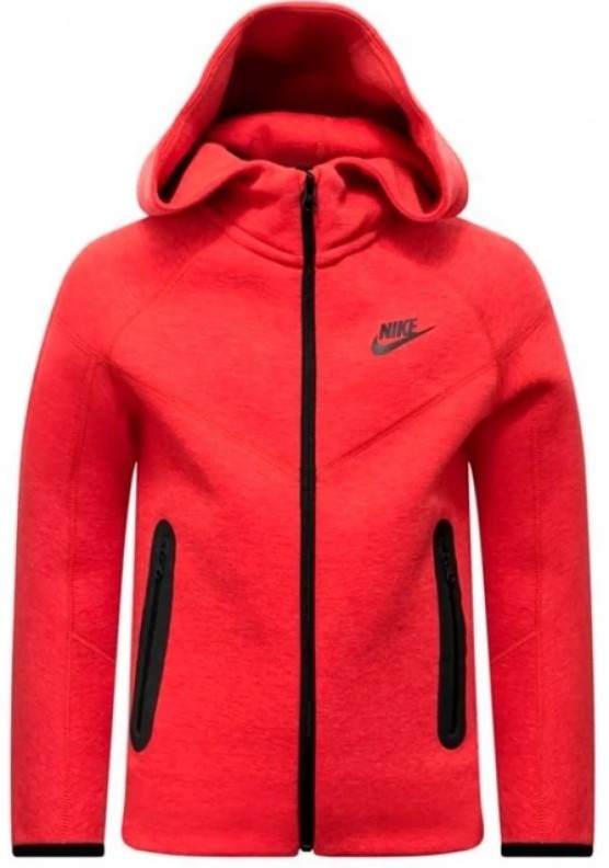 Детская толстовка Nike B Nsw Tech Flc Fz Light University Red Heather/Black, s.M