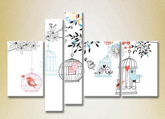Картина Rainbow Polyptych Birds Cages and Trees 04 (2231790)