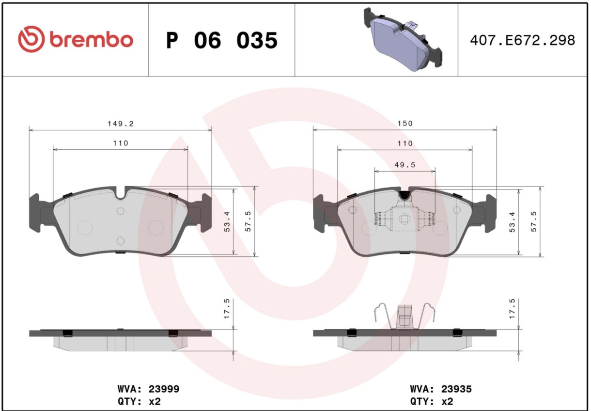 Комплект тормозных колодок Brembo P 06 035
