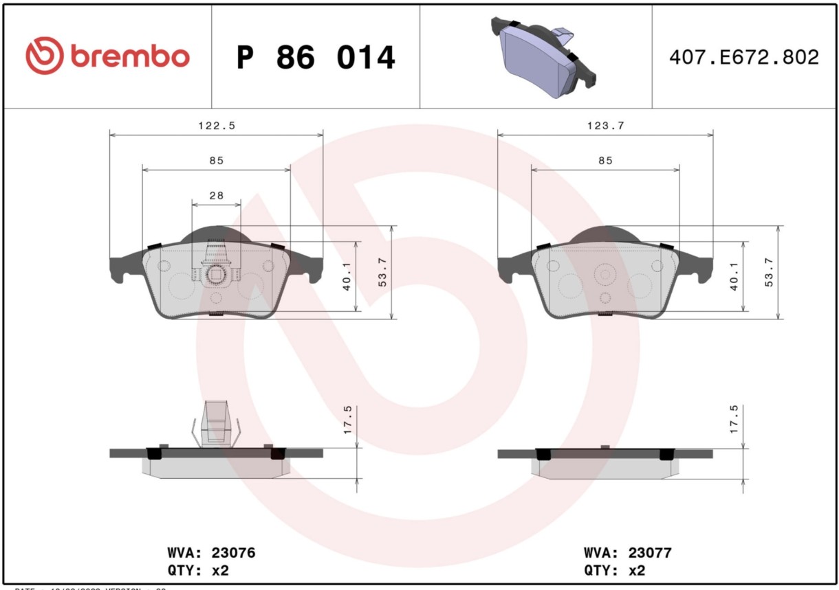 Комплект тормозных колодок Brembo P 86 014
